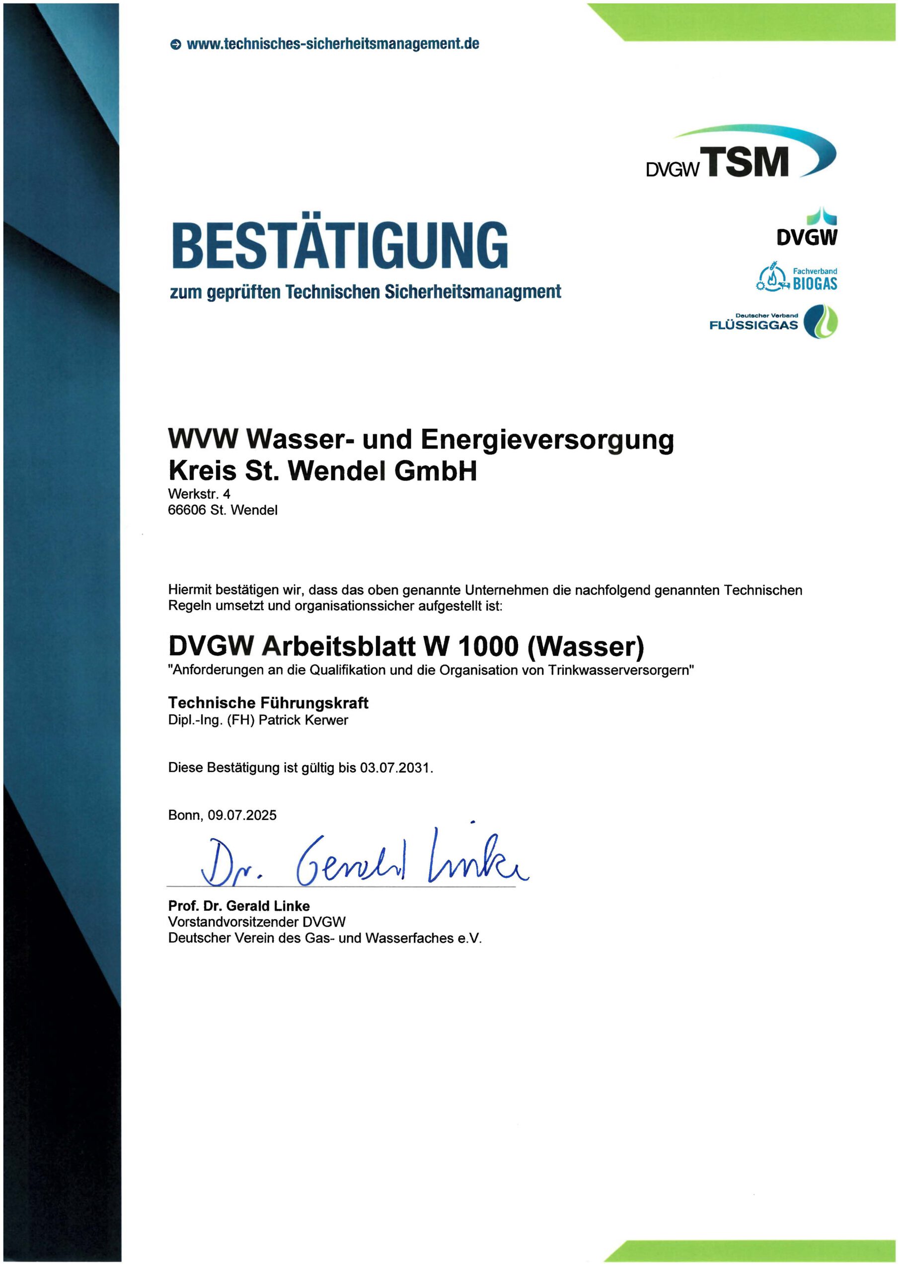 Aufsichtsrat der WVW Wasser- und Energieversorgung Kreis St. Wendel GmbH