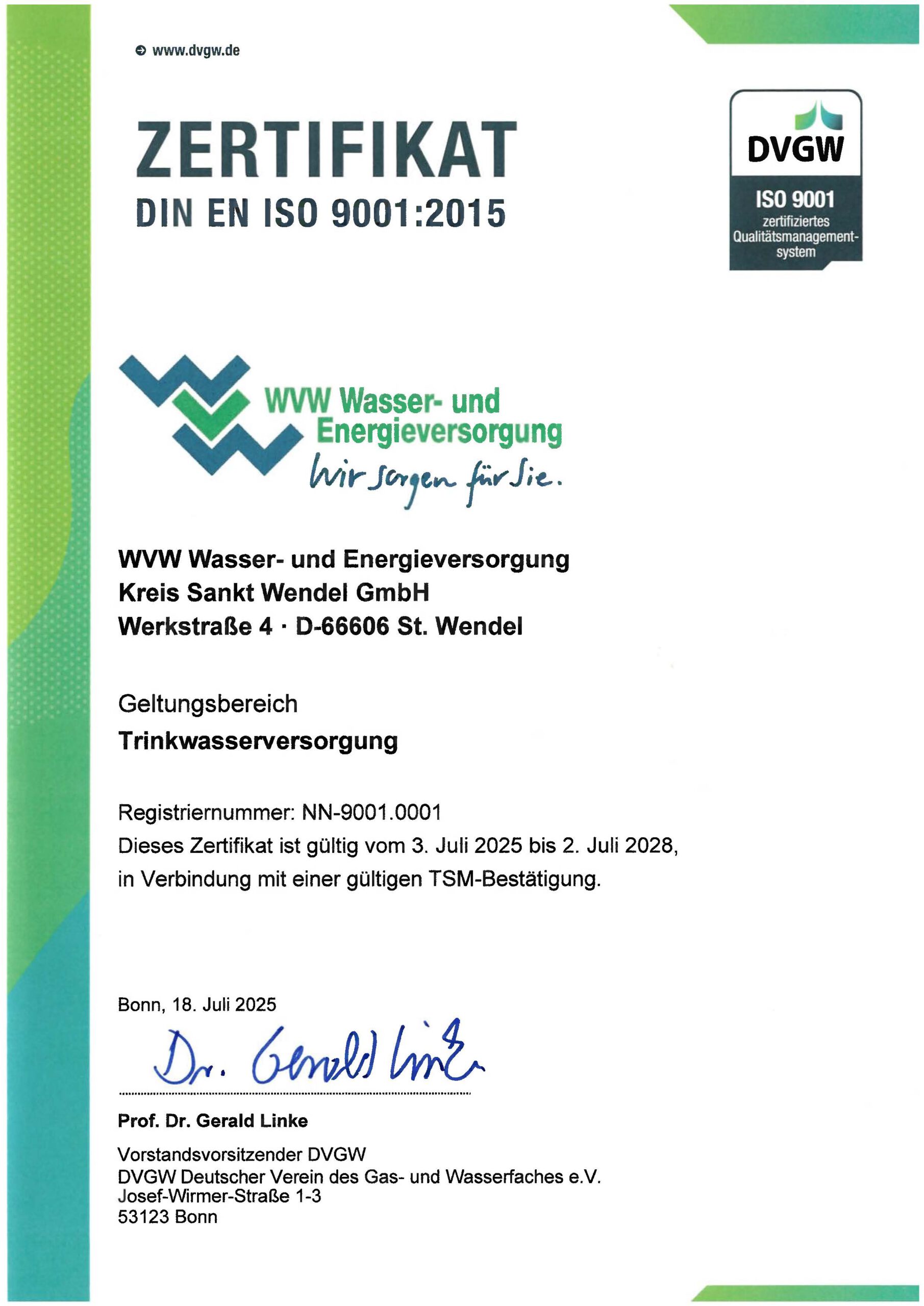 Nach Verhandlungen mit den zuständigen Gremien konnte bereits am 23.12.1974 durch Abschluss eines Gesellschaftsvertrages ein neues Wasserversorgungsunternehmen, die Wasserversorgung Kreis St. Wendel GmbH, kurz WVW genannt, gegründet werden.